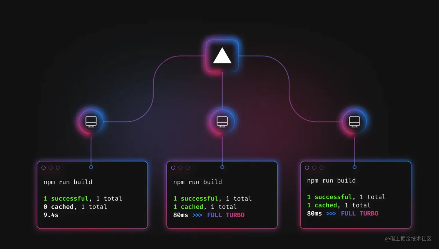 Vercel 团队的技术水平毋庸置疑,所以造出来的工具使用场景格局也是非常大。我个人感觉 Turborepo 的定位更像是服务企业级工程项目,这样的 monorepo 项目无论是包数量和 codebase 的量都是非常大,那么无不避免就会遇到运行 task 地效率低的问题。