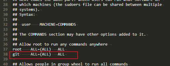 vim /etc/sudoers // 修改root权限