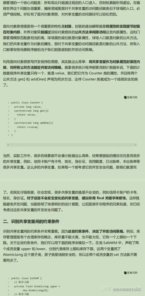 我们在设计并发程序的时候,主要是从宏观出发,也就是要重点关注它的安全性、活跃性以及性能。安全性方面要注意数据竞争和竞态条件,活跃性方面需要注意死锁、活锁、饥饿等问题,性能方面......。