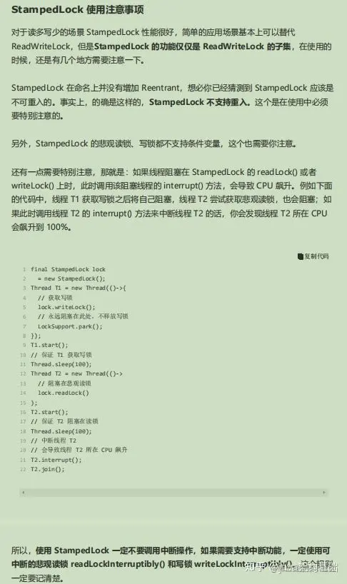 - StampedLock 使用注意事项