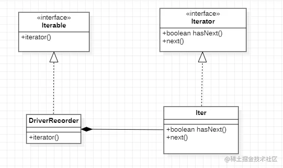 为了完成对各种集合类的遍历,我们定义了统一的迭代器接口 Iterator , 基于此我们让集合以内部类的方式实现其特有的迭代逻辑,再将自己标记为 Iterator 并返回迭代器实例,以证明自己是具备迭代能力的。具体的集合内部类结构与迭代逻辑对于客户端这个“局外人”是透明的,客户端只需要知道这个集合是可以迭代的,并向集合发起迭代请求以获取迭代器,这样就可以以大家熟知的方式遍历数据了。