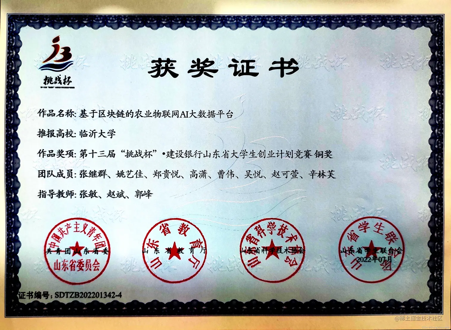 第十三届挑战杯建设银行山东省大学生创业计划竞赛铜奖