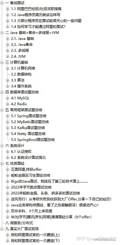 下面这张图是这个PDF的大致内容,详细内容的话在这里为大家展开有点不切合实际,下面也将会为大家截图部分的内容!