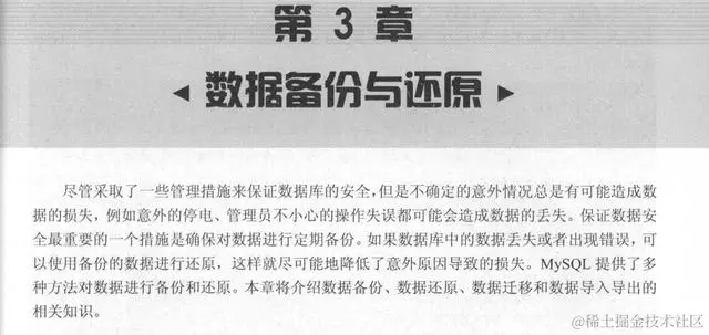 第3章介绍数据库的备份还原。包括各种备份方法、各种还原方法、数据库迁移的方法、表的导入和导出。