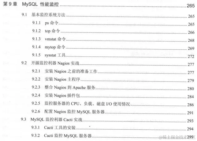 第9章介绍MySQL性能监控。包括基本监控系统方法、开源监控利器Nagios 实战、MySQL监控利器Cacti实战。
