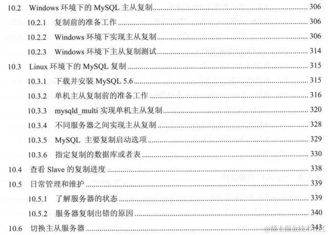 第10章介绍MySQL Replication。 包括MySQL Replication 概述、Windows 环境下的MySQL主从复制、Linux环境下的MySQL复制、查看Slave的复制进度、日常管理和维护、切换主从服务器。