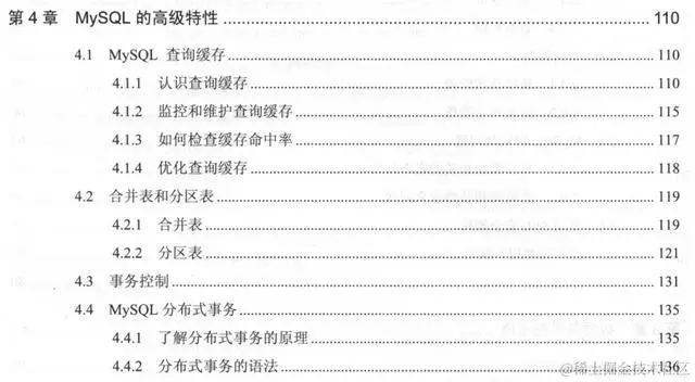 第4章介绍MySQL的高级特性。包括MySQL查询缓存、合并表和分区表、事务控制和MySQL分布式事务。