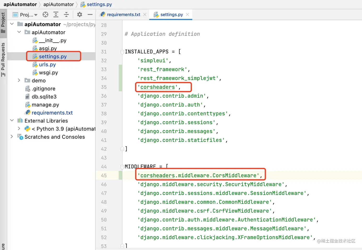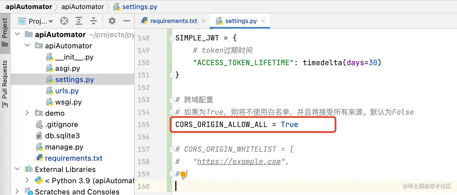 django-cors-headers插件 - 在配置文件中新增配置项