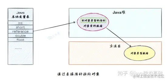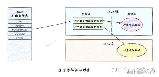 Java程序会通过栈上的reference数据来操作堆上的具体对象。由于reference类型在《Java虚拟机规范》里面只规定了它是一个指向对象的引用,并没有定义这个引用应该通过什么方式去定位、访问到堆中对象的具体位置,所以对象访问方式也是由虚拟机实现而定的,主流的访问方式主要有使用句柄和直接指针两种:
