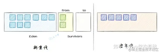 Java堆是垃圾收集器管理的内存区域,因此一些资料中它也被称作“GC堆”(Garbage Collected Heap,)。从回收内存的角度看,由于现代垃圾收集器大部分都是基于分代收集理论设计的,所以Java堆中经常会出现 新生代 、 老年代 、 Eden空间 、 From Survivor空间 、 To Survivor空间 等名词,需要注意的是这种划分只是根据垃圾回收机制来进行的划分,不是Java虚拟机规范本身制定的。