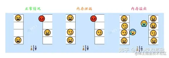 用一个有味道的比喻,内存溢出就是排队去蹲坑,发现没坑位了,内存泄漏,就是有人占着茅坑不拉屎,占着茅坑不拉屎的多了可能会导致坑位不够用。