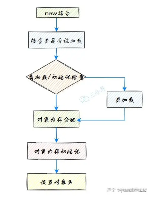 - 检查这个符号引用代表的类是否已被加载、解析和初始化过。如果没有,就先执行相应的类加载过程