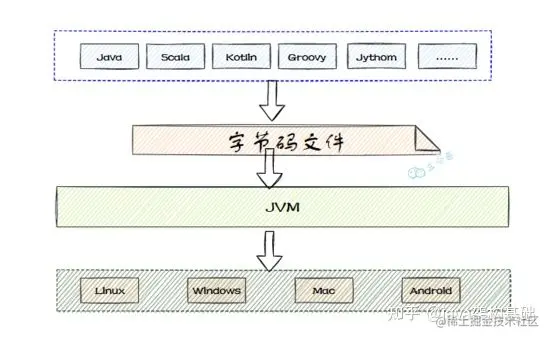 同时JVM也是一个跨语言的平台,和语言无关,只和class的文件格式关联,任何语言,只要能翻译成符合规范的字节码文件,都能被JVM运行。