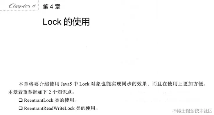 在本章中完全可以使用Lock对象将synchronized关键字替换掉,而且其具有的独特功能也是synchronized所不具有的。在学习并发时,Lock 是synchronized关键字的进阶,掌握Lock有助于学习并发包中源代码的实现原理,在并发包中大量的类使用了Lock接口作为同步的处理方式。