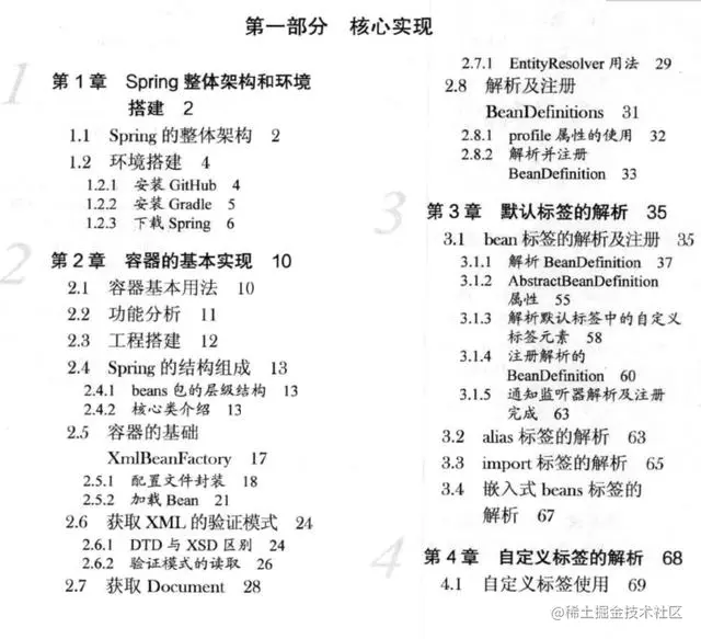 第一部分核心实现(第1~7章): 是Spring功能的基础,也是企业应用部分的基础,主要对容器以及AOP功能实现做了具体的分析,如果读者之前没有接触过Spring源代码,建议认真阅读这个部分,否则阅读企业应用部分时会比较吃力。