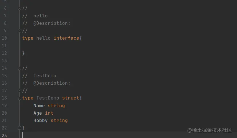 - 开始在我们的代码中验证注释, 在方法、结构体、接口上 使用 快捷键 ctrl +alt +/ (windows 系统), 如果是 mac 可以使用 control + commond + / 快捷键,