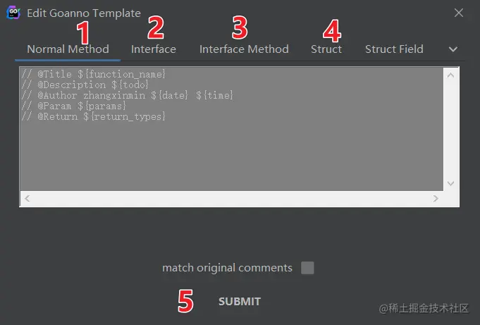 - 配置 Goanno 插件,按照如下方式配置后,点击 submit 即可生效