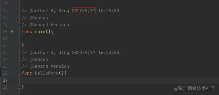 但是咱们没必要所有注释都自己写,这耗时耗力,明明有工具可以提高我们的效率,咱们就不要用手写了,咱们来看看 goland 如何给我们自动生成各种注释,分别为如下两个方面
