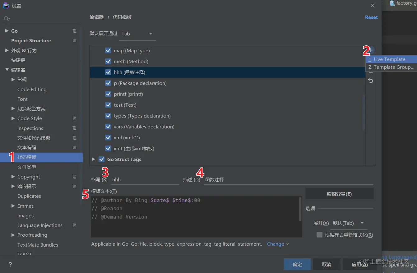 直接 使用插件 Goanno 的方式来对方法、接口、结构体注释模板配置