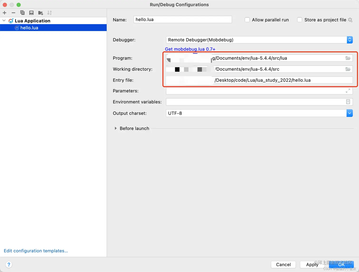 在打开的文件中,增加刚才下载的 lua 文件路径