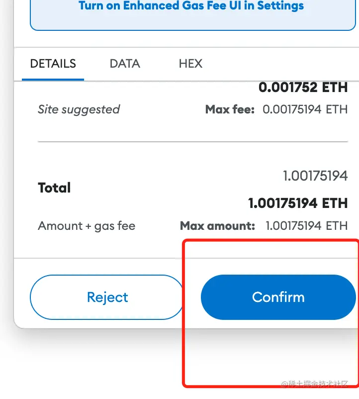 我们点击confirm,可以看到我们账号已经少了10ETH