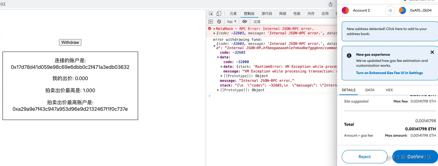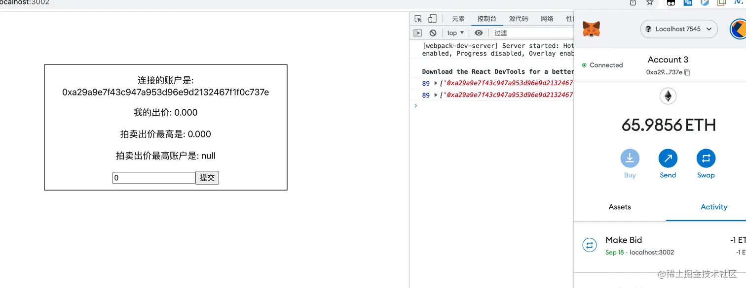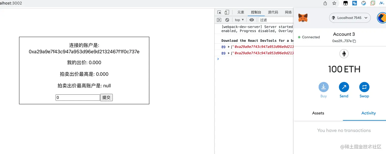 然后还是先选择Account3 出价竞拍,然后再切换回Account2,查看