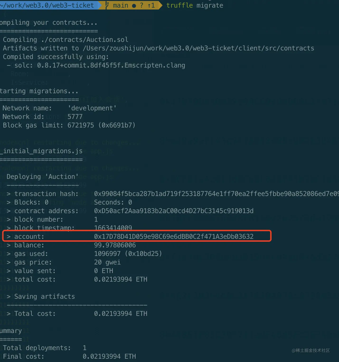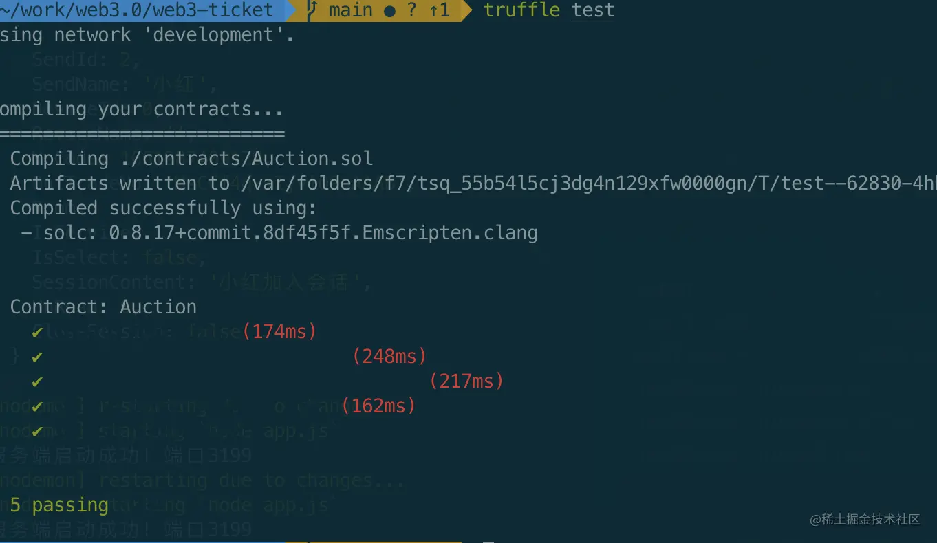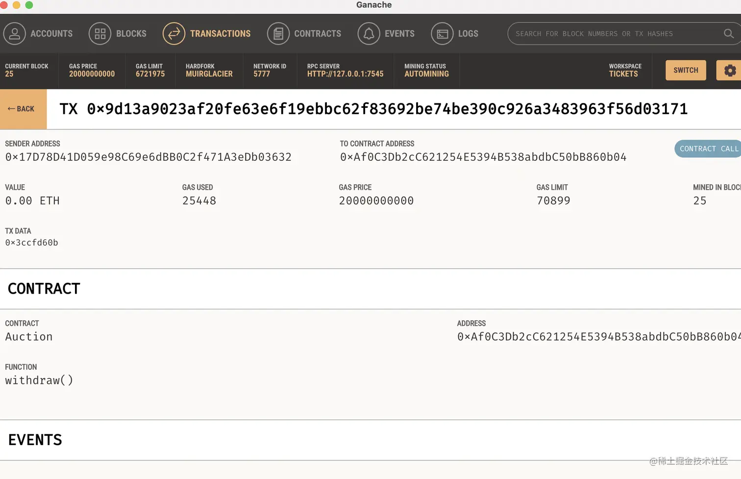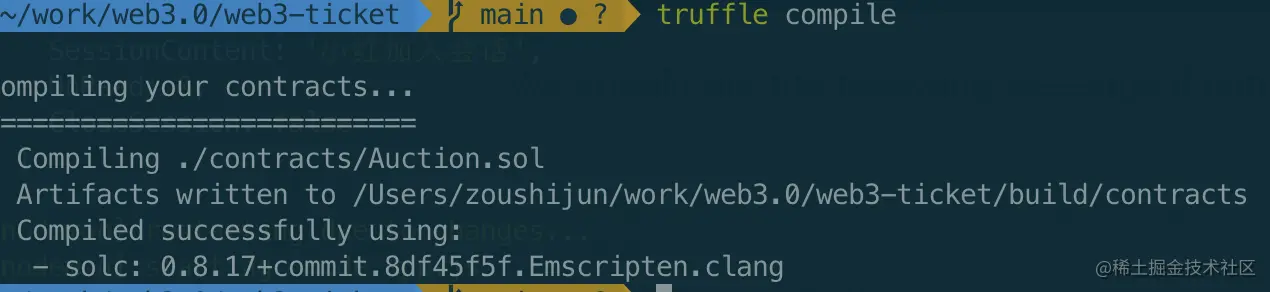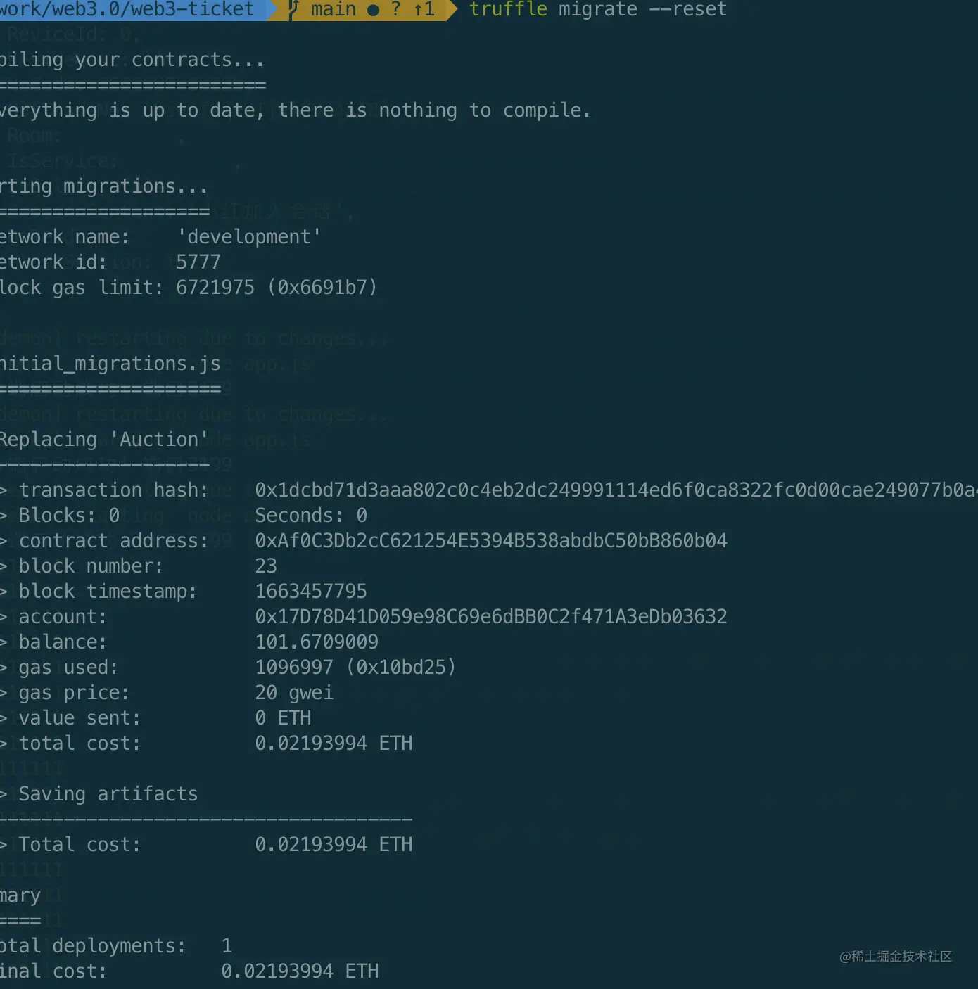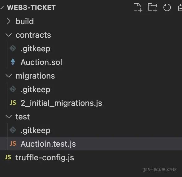 - 在web3-ticket/contracts下新建拍卖合约,Auction.sol,代码比较简单,关键地方都已经添加注释。