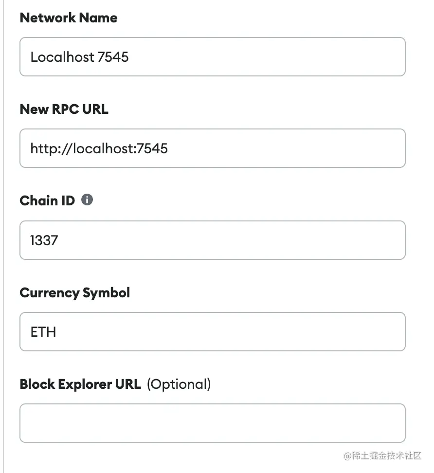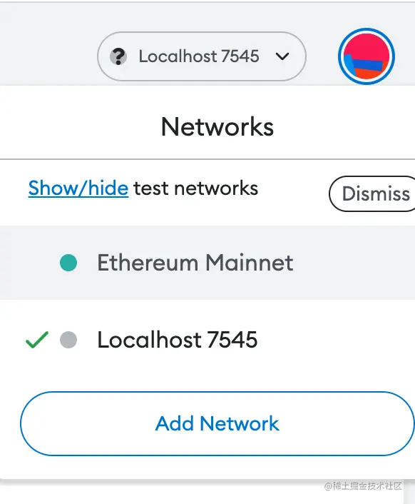这里主要是需要把钱包连接到Ganache启动的链上,点击增加Add Network