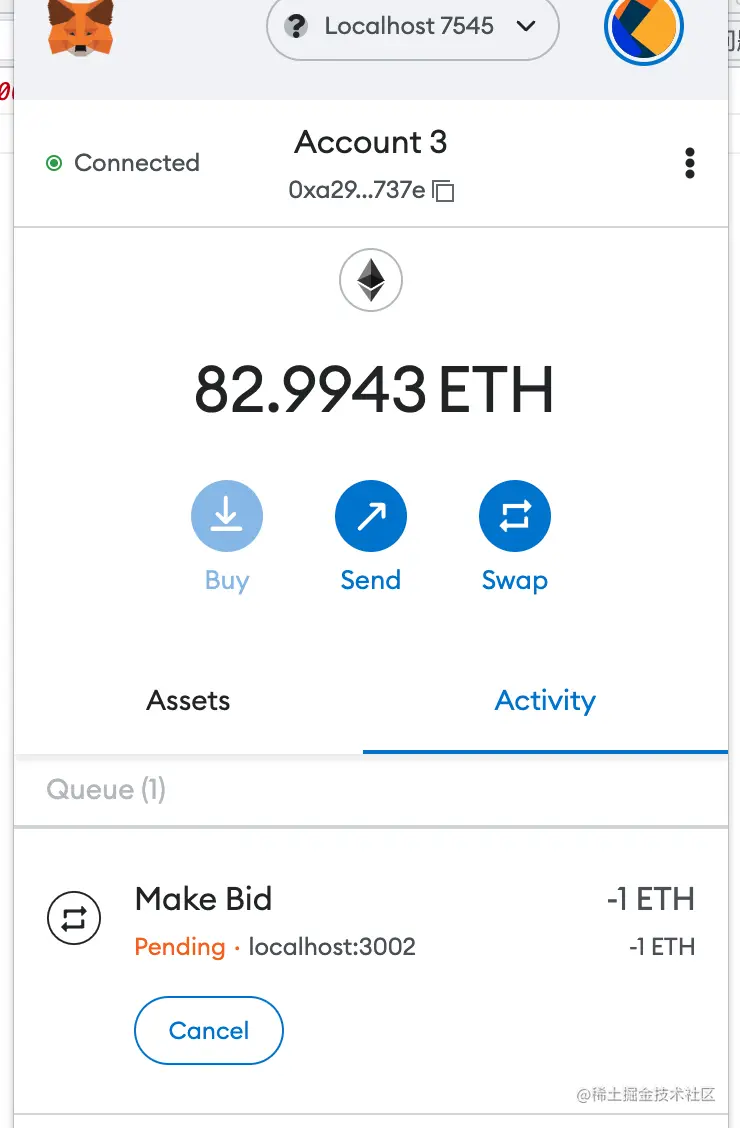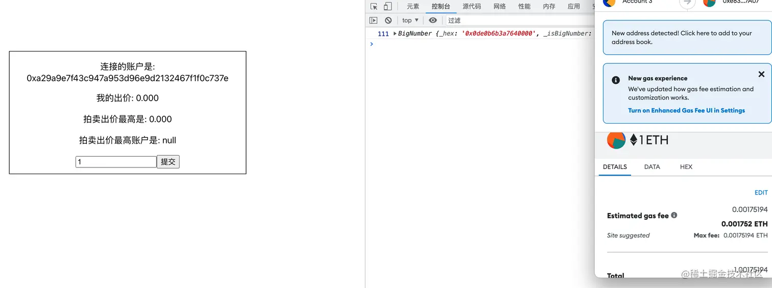 这里因为是需要输入拍卖假,我们选择10个ETH,查看效果