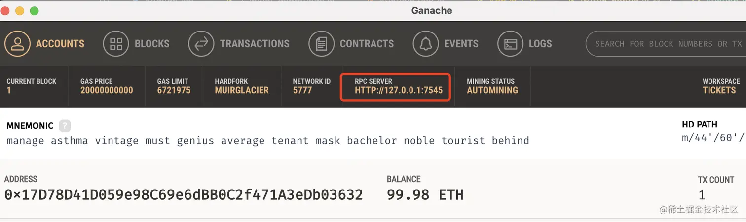 - 安装ganache, ganache相当于是把以太网部署在本地,我们可以把合约发布到本地的以太网上。