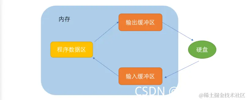 从内存向磁盘输出数据会先送到内存中的缓冲区,装满缓冲区后才一起送到磁盘上。如果从磁盘向计算机读入数据,则从磁盘文件中读取数据输入到内存缓冲区(充满缓冲区),然后再从缓冲区逐个地将数据送到程序数据区(程序变量等)