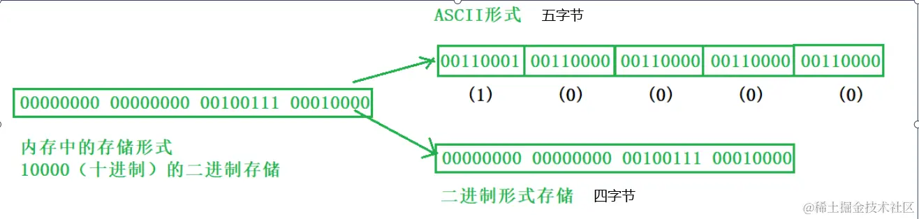 字符一律以 ASCII 形式存储,数值型数据既可以用 ASCII 形式存储,也可以使用二进制形式存储