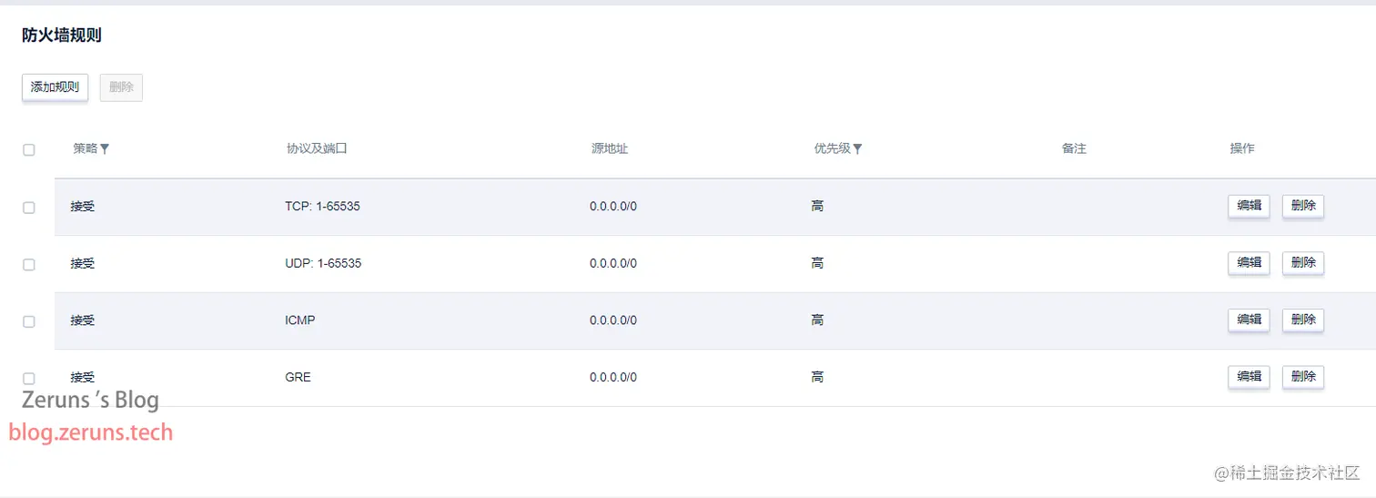如果你使用阿里云,腾讯云或者其他云服务商,请进入控制台到 防火墙/安全组 策略,放行以上端口。