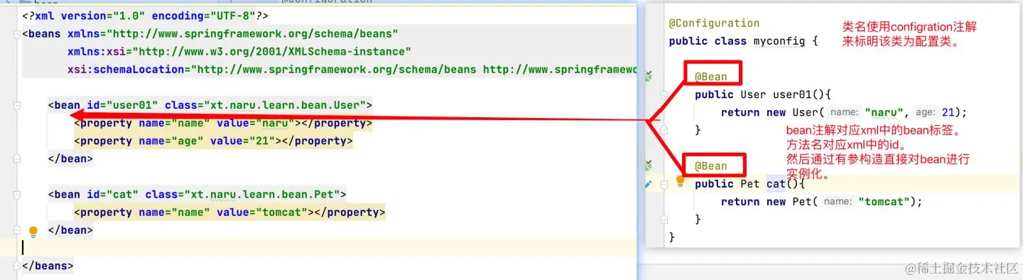 或许这句话有些难以理解,这样去想吧,我们在 myconfig 中进行了两个 bean 的实例化。