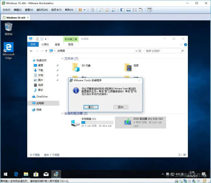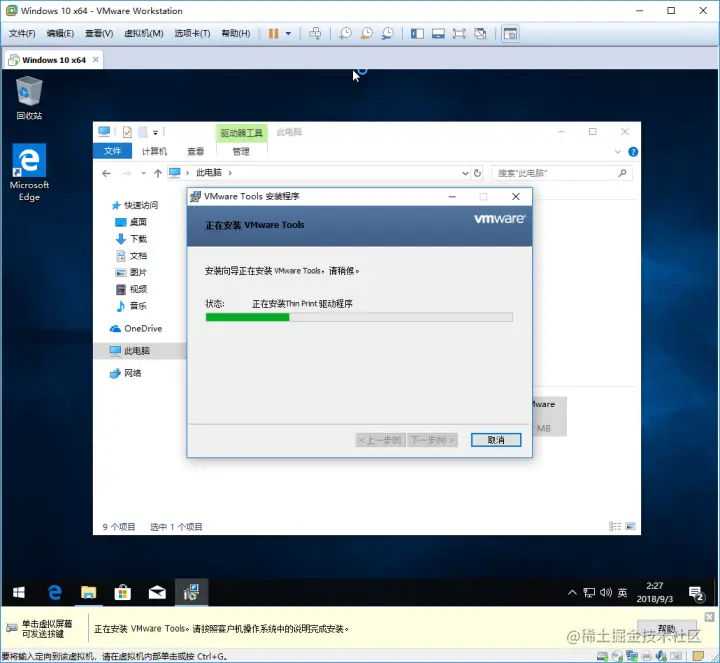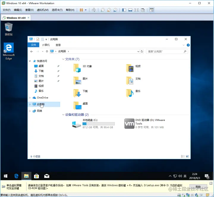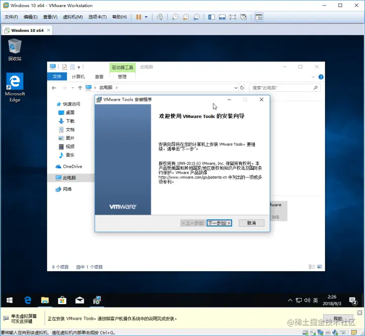 点击此电脑,双击DVD 驱动器(D:)VMware Tools