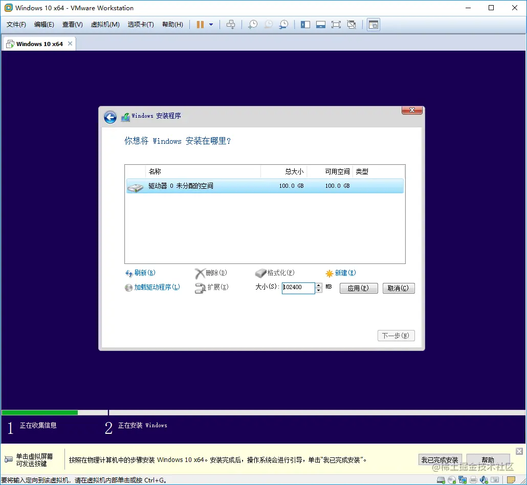 大小条件分区大小,一般一个区就够了,也就是只有C盘,所以默认大小,直接点击应用