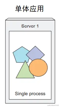 单体应用由紧密耦合在一起的多个组件构成,由于这些组件在同一个操作系统进程中运行,所以在开发、部署和管理时必须以同一个实体进行。如果对应用某一组件进行了修改,就需要对整个应用进行重新部署。组件缺乏严格的边界定义,相互依赖,日积月累导致系统复杂度提升,整体质量也急剧恶化。如下图所示的单体应用: