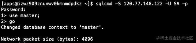 $ sqlcmd -S 120.77.148.122 -U SA -p