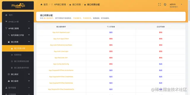 分配需要的接口权限,