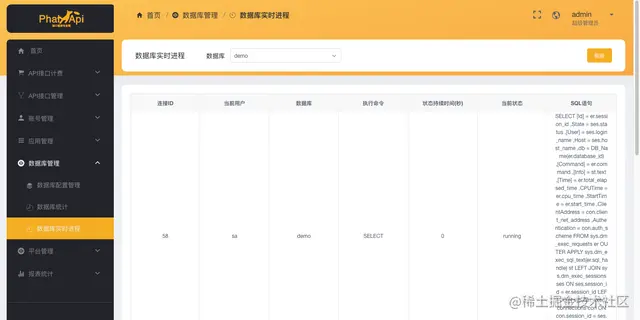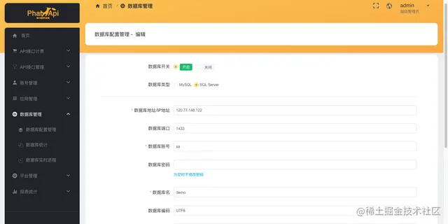 成功登录管理后台,即可进入后台对API接口、SQL Server数据库、开发者账号和流量进行管理。