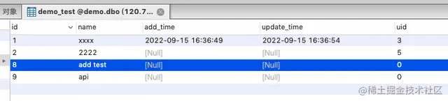 {"ret":200,"data":{"rows":[{"id":"1","name":"xxxx","add_time":"2022-09-15 16:36:49","update_time":"2022-09-15 16:36:54","uid":"3"}]},"msg":""}