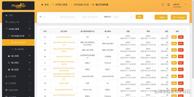 进入【API接口管理】-【低代码接口开发】-【接口开发列表】,可以管理你已经编写和发布的API接口。