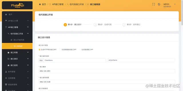 紧接着,继续配置填写你的接口名称、接口参数、接口功能描述等。