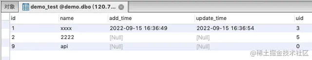 例如,当前有数据库表 demo_test,表结构如下:
