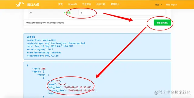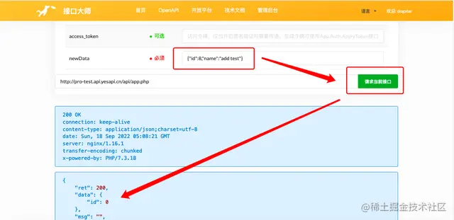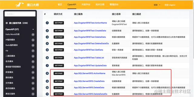 在管理后台发布接口后,可以在管理后台查看【接口文档】,或直接到前台查看【OpenAPI】,即可查看刚才发布成功的新接口。