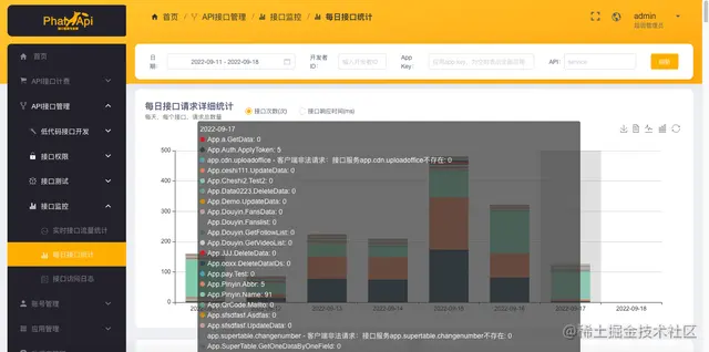 在【每日接口统计】,可以看到接口的汇总统计。