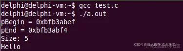 - char* pEnd = s + DIM(s); // Key point ==> pEnd 指向 'o' 后面的地址 ==> 这在 C 语言中是一个擦边球的边界位置,也是一个技巧,在这个边界位置可以认为该指针是合法的,可以和其他指针进行比较运算和减法运算等,在 C++ 标准库里面也合法