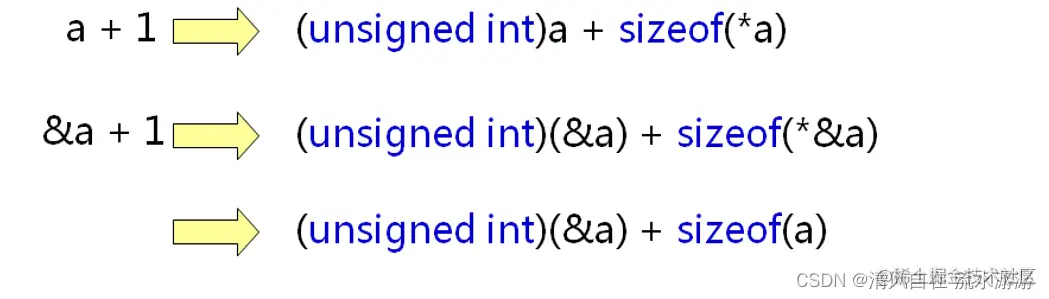 这个就能看出 a + 1 和 &a + 1 的不同,a + 1 增加的步长是一个元素的大小, &a + 1 则是增加的步长是整个数组的大小。
