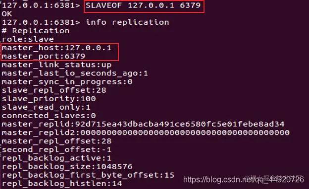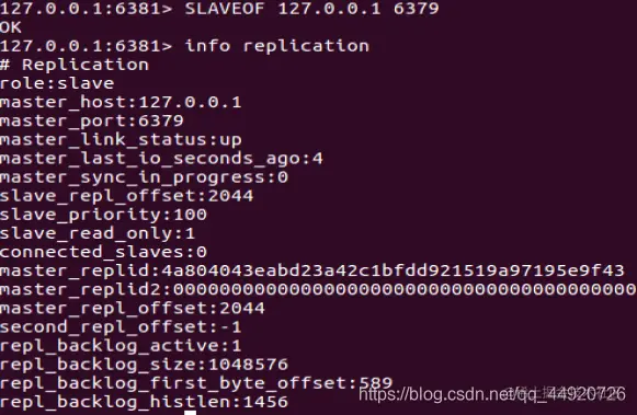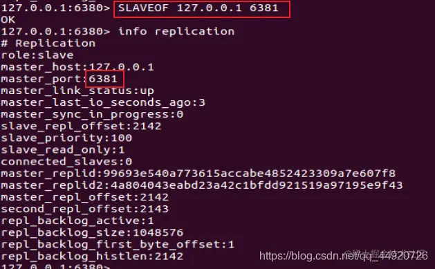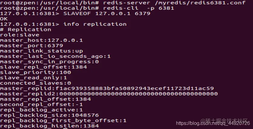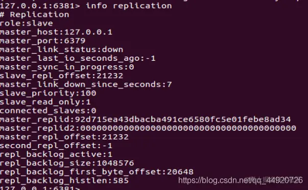 我们可以看到当6381作为6380的从机,6380又作为6379的从机,这就是薪火相传。6380是6379的从机,也是6381的主机,这样就减缓6379主机服务器的压力。