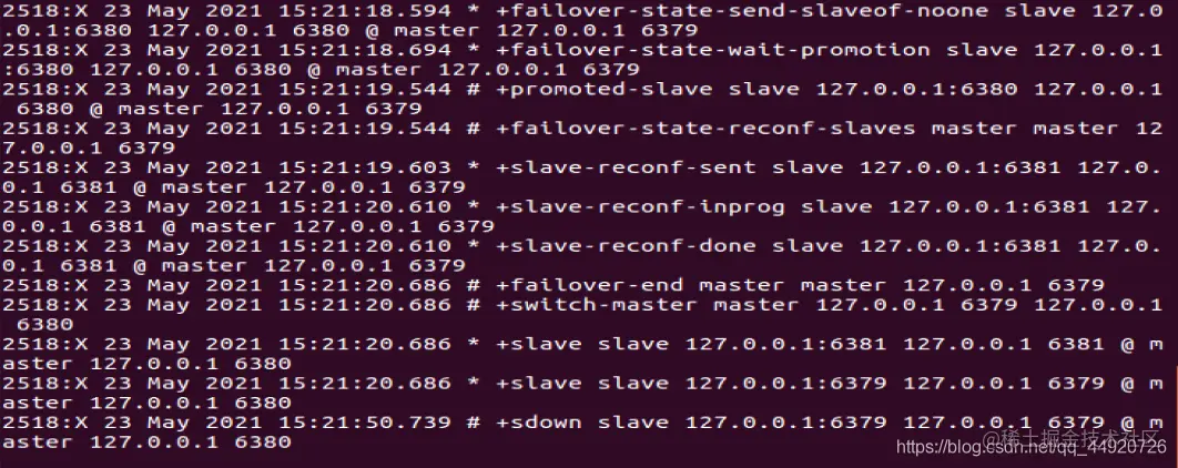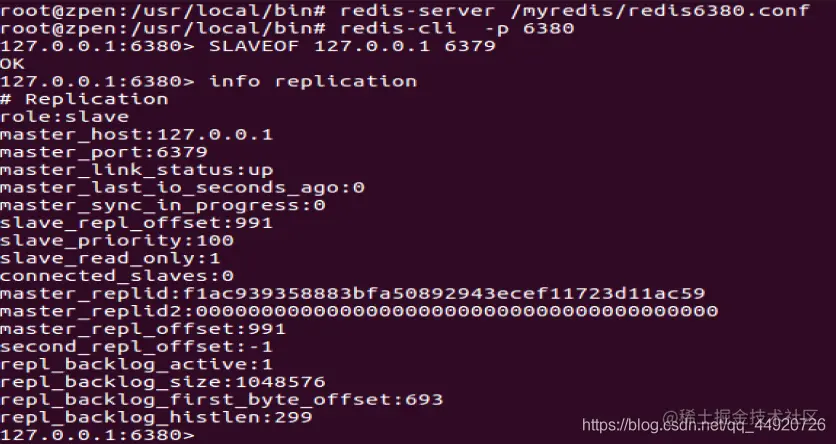 最后选出来的主机是6380。6381加入6380的从机。